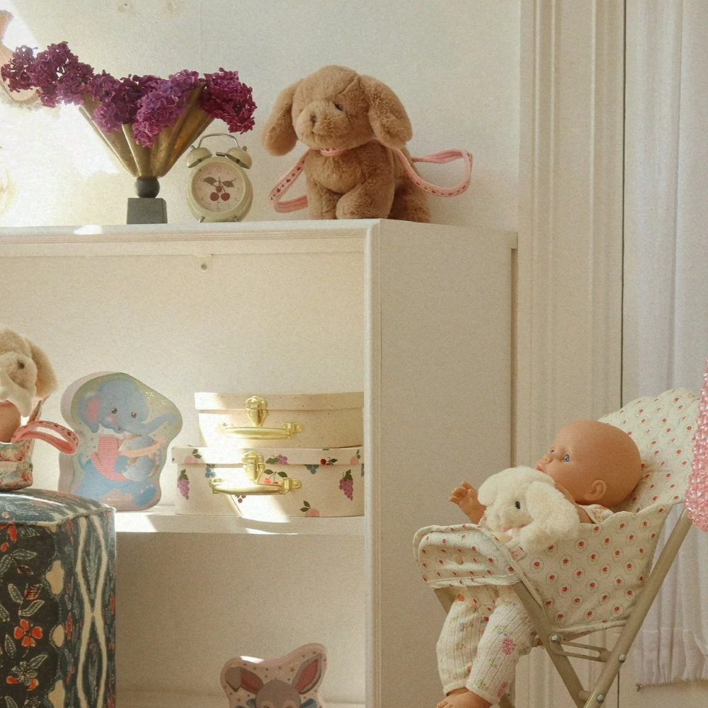 Dieses charmante Set aus zwei Koffern aus Pappe ermöglicht es Ihnen, Spielzeug, Schmuck und Erinnerungsstücke einfach zu organisieren und ist gleichzeitig ein schönes dekoratives Element im Zimmer Ihres Kindes.