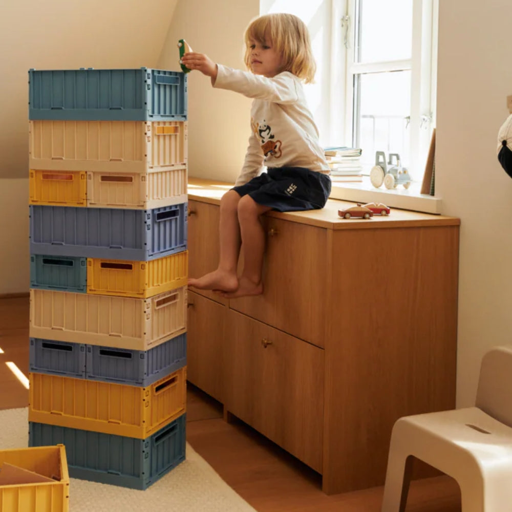 Mit seinem leichten, zusammenklappbaren Design ermöglicht der Behälter eine schnelle Organisation Ihres Raumes und sein farbenfrohes Finish verleiht ihm einen lustigen, kindlichen Touch.