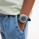Die Kinderuhr ist wasserdicht und somit ein zuverlässiger Begleiter für Wasserspiele, Sport oder Regentage.