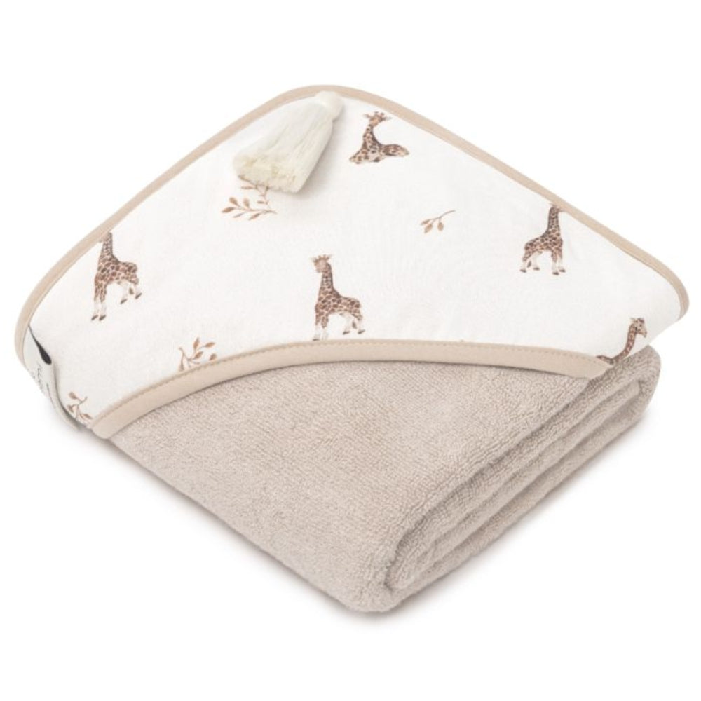 Ein Bambus-Babyhandtuch aus der Giraffenkollektion von Memi.
