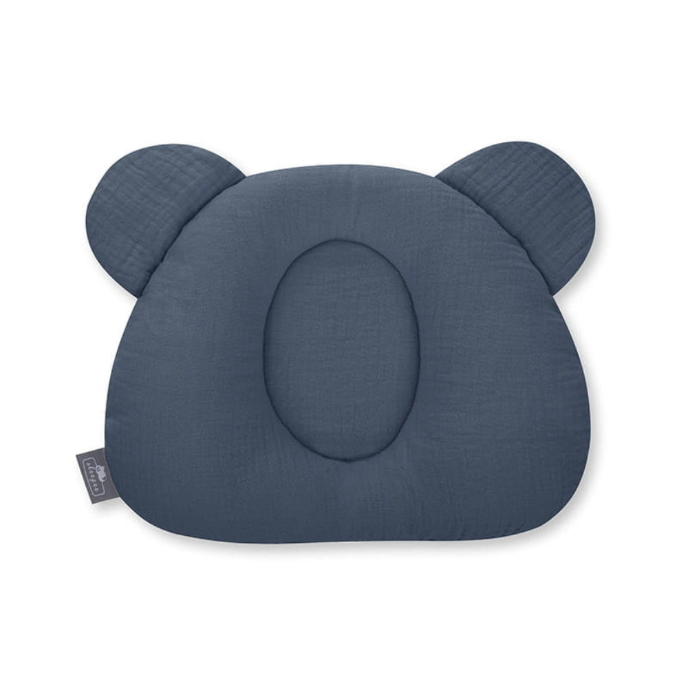 Das Babykissen Sleepee ist aus weichem Baumwollmusselin gefertigt und hat die Form eines Teddybärkopfes.