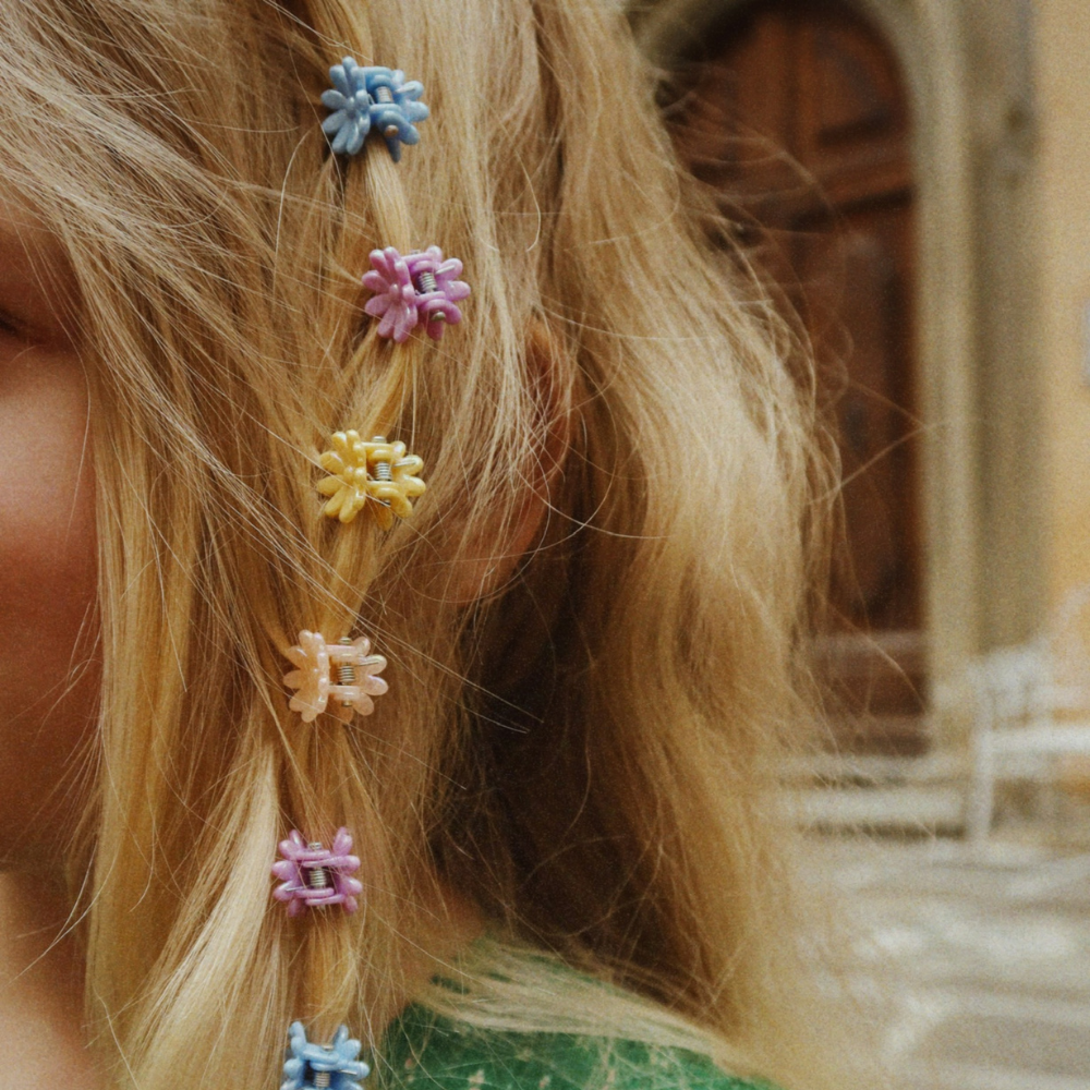 Das Set mit den Miniblumen eignet sich sowohl für Frisuren, die mehrmals auf einmal gemacht werden müssen, als auch für zarte, raffinierte Frisuren.