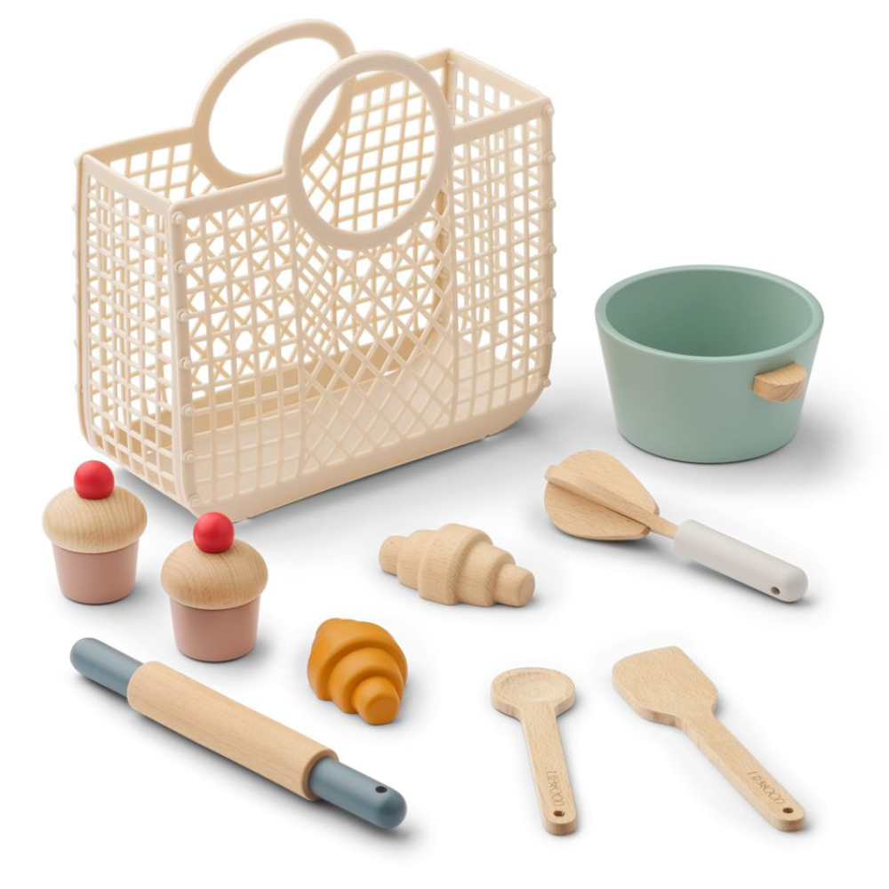 Und wenn der Spaß vorbei ist, lässt sich das Spielzeug-Backset bequem in einem Korb zusammenpacken und mitnehmen.