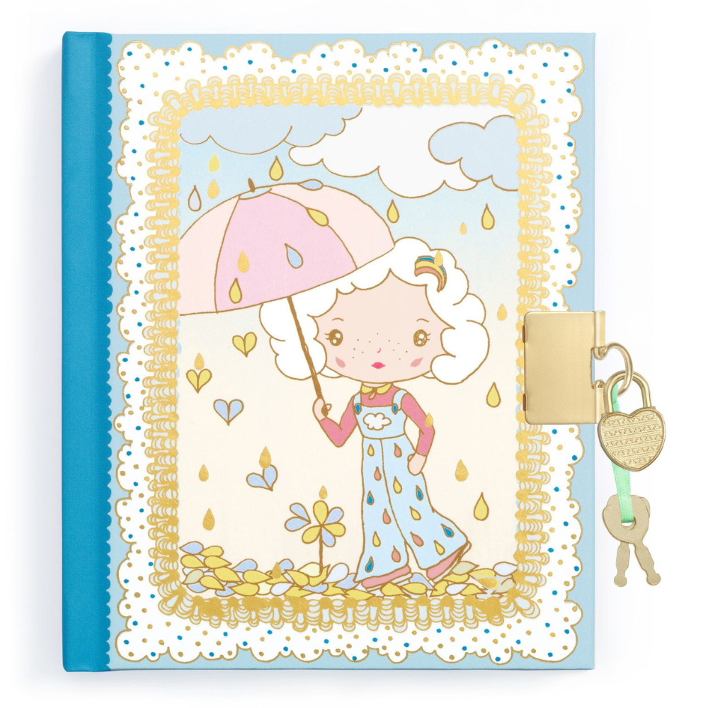 Das Djeco Tinyly Prunelle Geheimtagebuch mit goldenen Verzierungen und einem herzförmigen Vorhängeschloss ist ein charmanter Begleiter für tägliche Notizen.