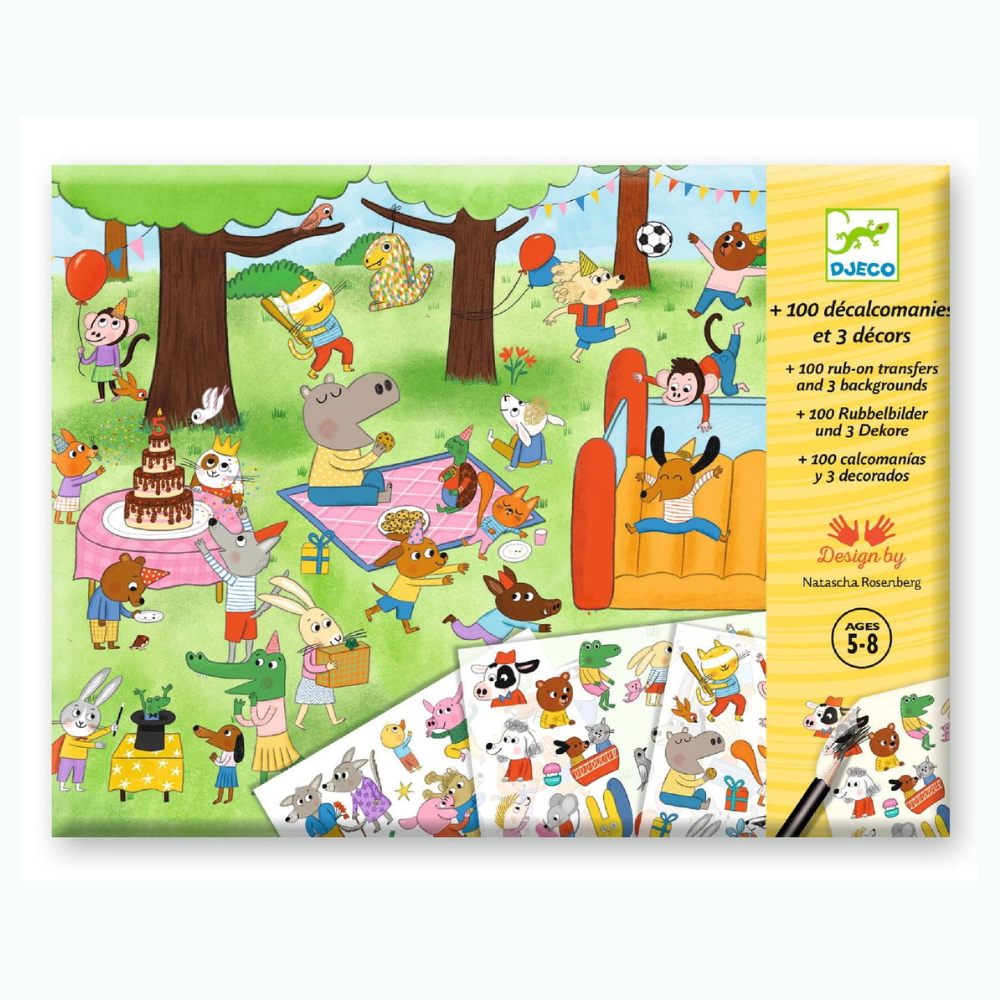 Dieses Abziehbilder-Set von Djeco entführt Ihr Kind in die bunte Welt der Geburtstage, Karnevals und Feste - voller lustiger Figuren und Szenen, die immer wieder neu gestaltet werden können.