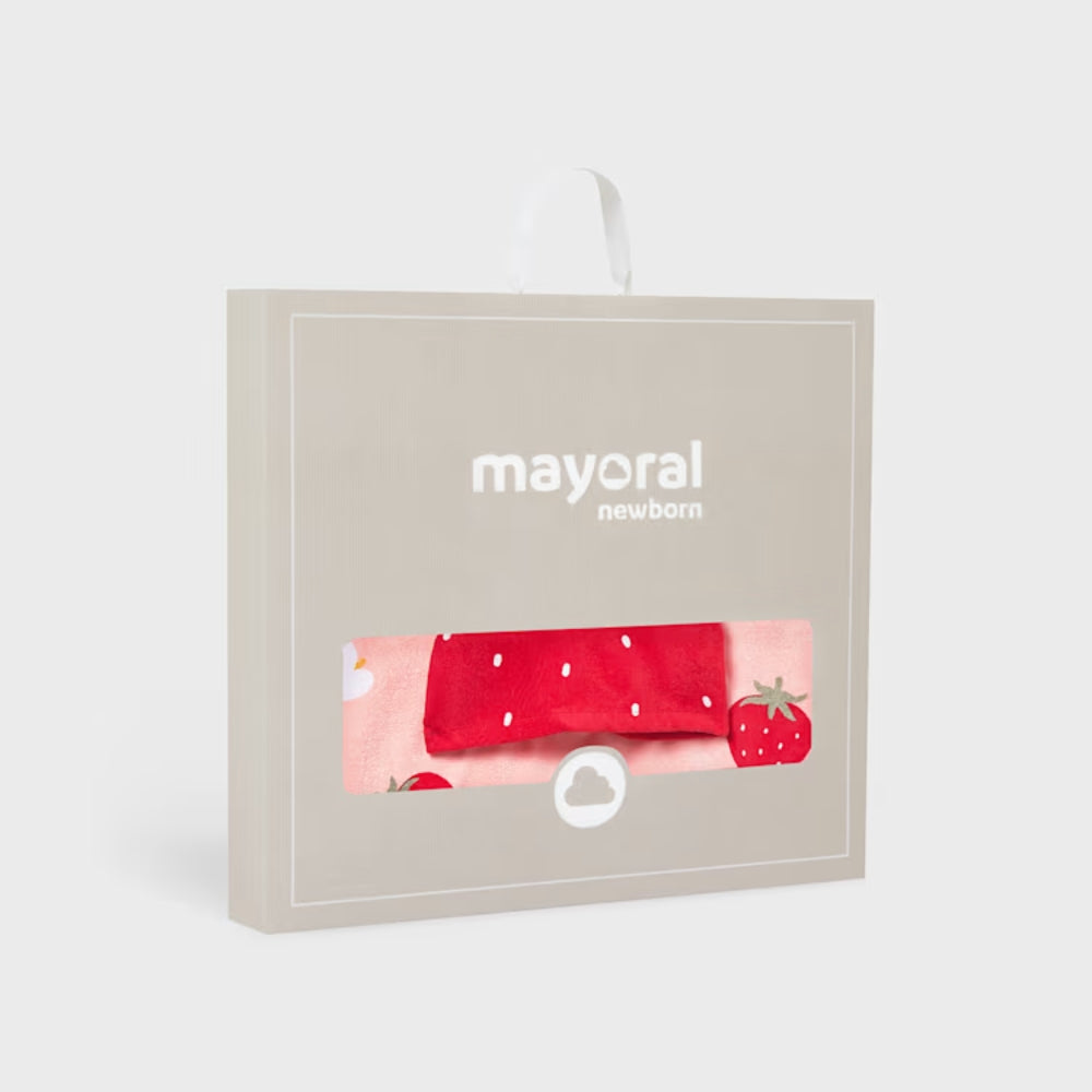 Das Modell Mayoral zeichnet sich durch seine intensiv rote Farbe und das Motiv aus Erdbeeren und kleinen Blumen aus.