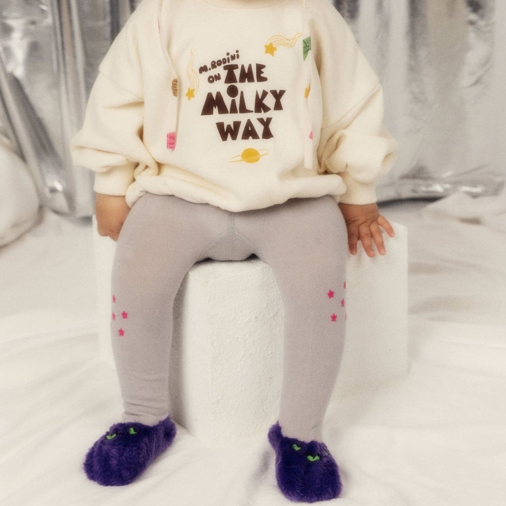 Die dekorativen Sterne an den Beinen und der Schriftzug "The Inter Galactic Travel Agency" auf der Rückseite unterstreichen den kreativen Stil, für den Mini Rodini bekannt ist.