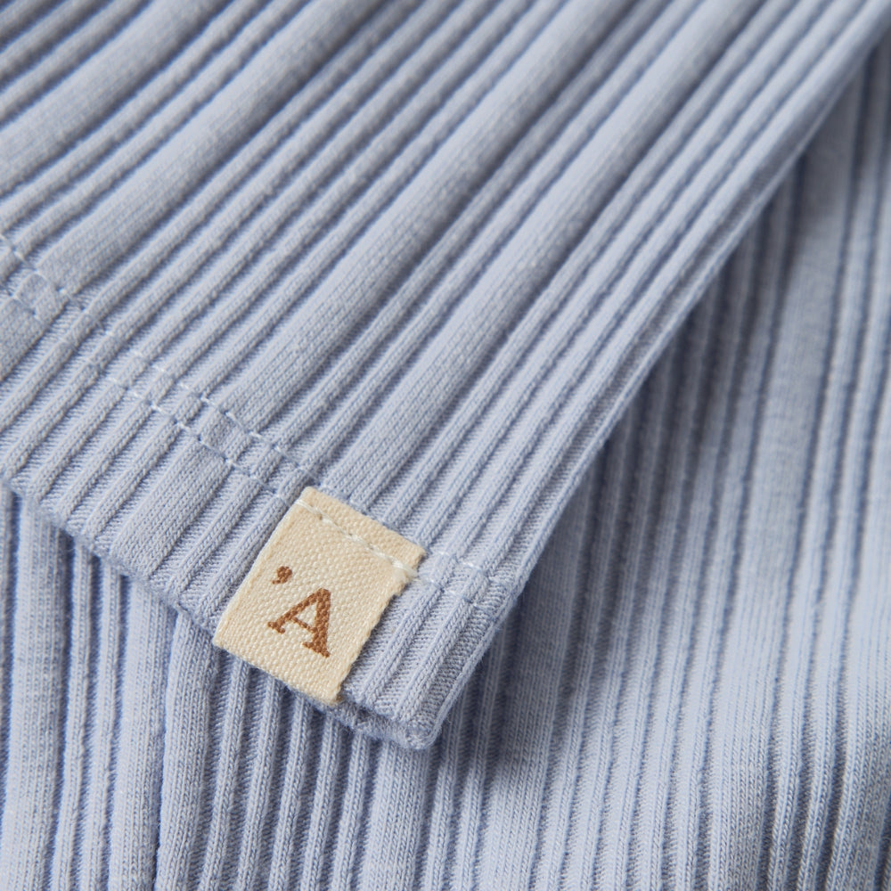 Die dezente Rüsche setzt einen mädchenhaften Akzent und die gedeckte blaue Farbe passt sowohl zu Alltagslooks als auch zu eleganteren Ensembles.