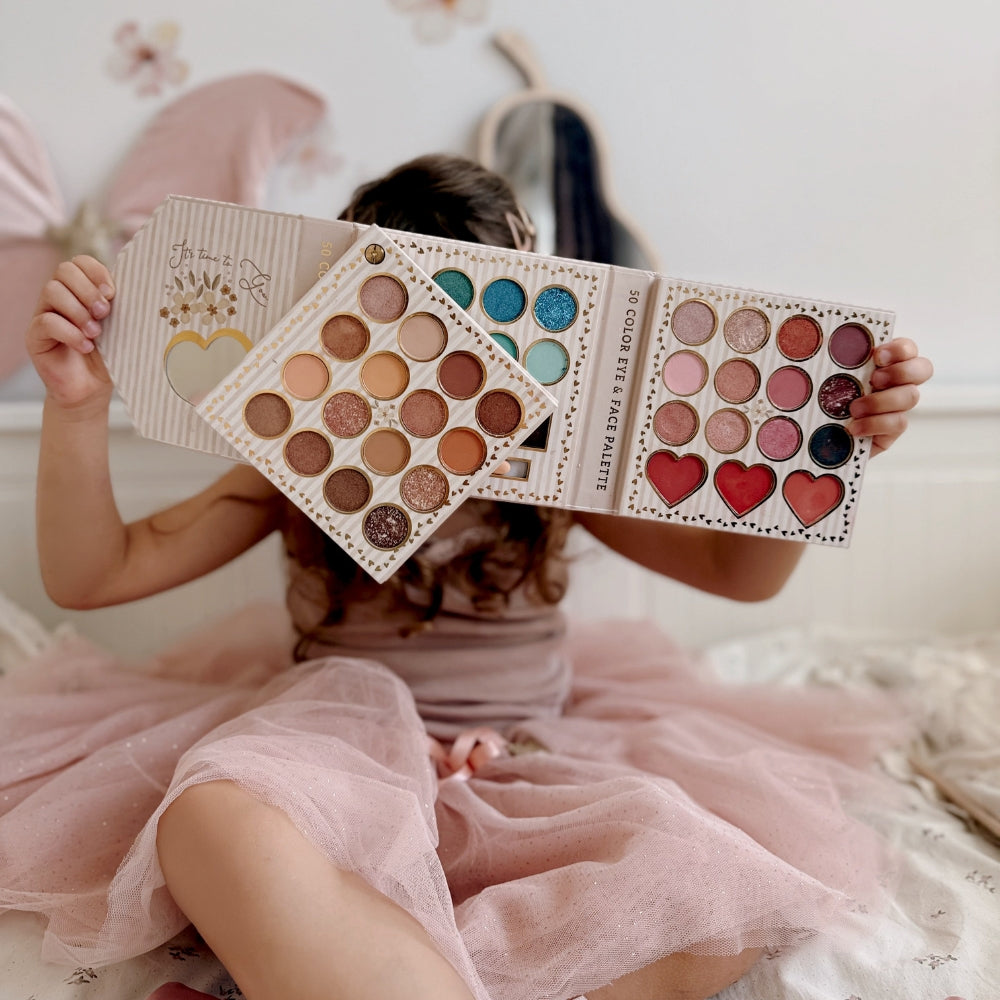 Sie enthält bis zu 50 Lid- und Gesichtsschatten in einer Vielzahl von Farben, die voller Ausstrahlung und Energie sind. Mit dieser Palette können Kinder ihre eigenen Looks kreieren, ihren Sinn für Ästhetik entwickeln und ihre Zeit mit kreativem Spaß verbringen.