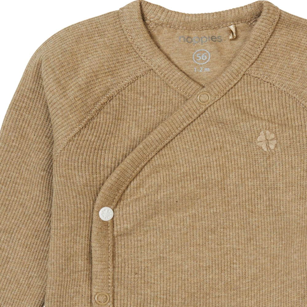 Der weiche, gerippte Stoff sorgt für Komfort und Bewegungsfreiheit. Die langen Ärmel eignen sich perfekt für kältere Tage, und die neutrale Farbe erleichtert die Kombination mit anderen Kleidungsstücken - es kann mit einer passenden Hose und einer Mütze aus der gleichen Kollektion kombiniert werden.