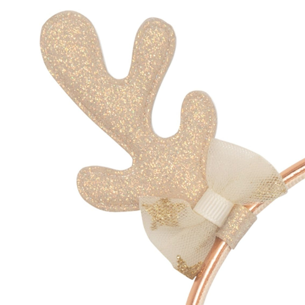 In Gold gefertigt und mit weichen, glitzernden Rentierhörnern verziert, unterstreicht er wunderbar den kindlichen Charme und ist perfekt für Weihnachts- oder Winterpartys.