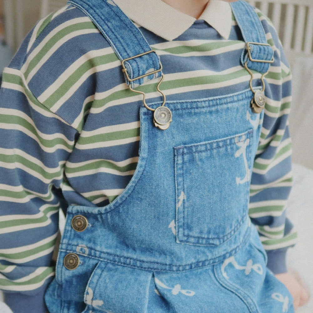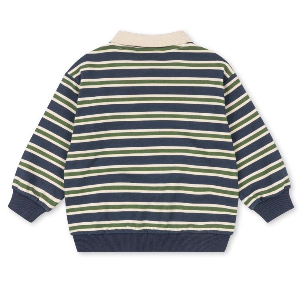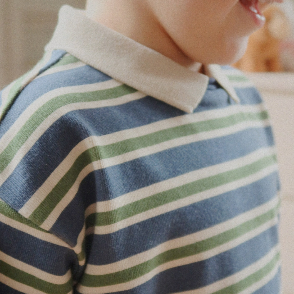 Das Kinderpolo hat eine lässige, an ein Sweatshirt erinnernde Passform mit Kragen, abgesenkter Schulterlinie und bequemen Rippenbündchen.