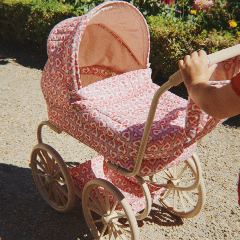 Der Puppenwagen MINNIE in der Farbe Felice Rose von Konges Slojd ist eine charmante Vintage-Version in kleinerem Format, perfekt für kleine Kinder.