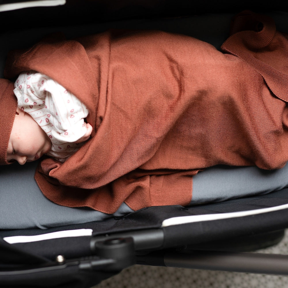 Das Kinderwagentuch von Yarnami by Poofi ist eine Kombination aus natürlichen Materialien, hochwertiger Verarbeitung und außergewöhnlichem Komfort für das Baby.