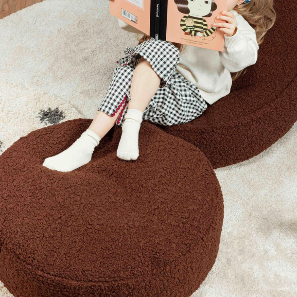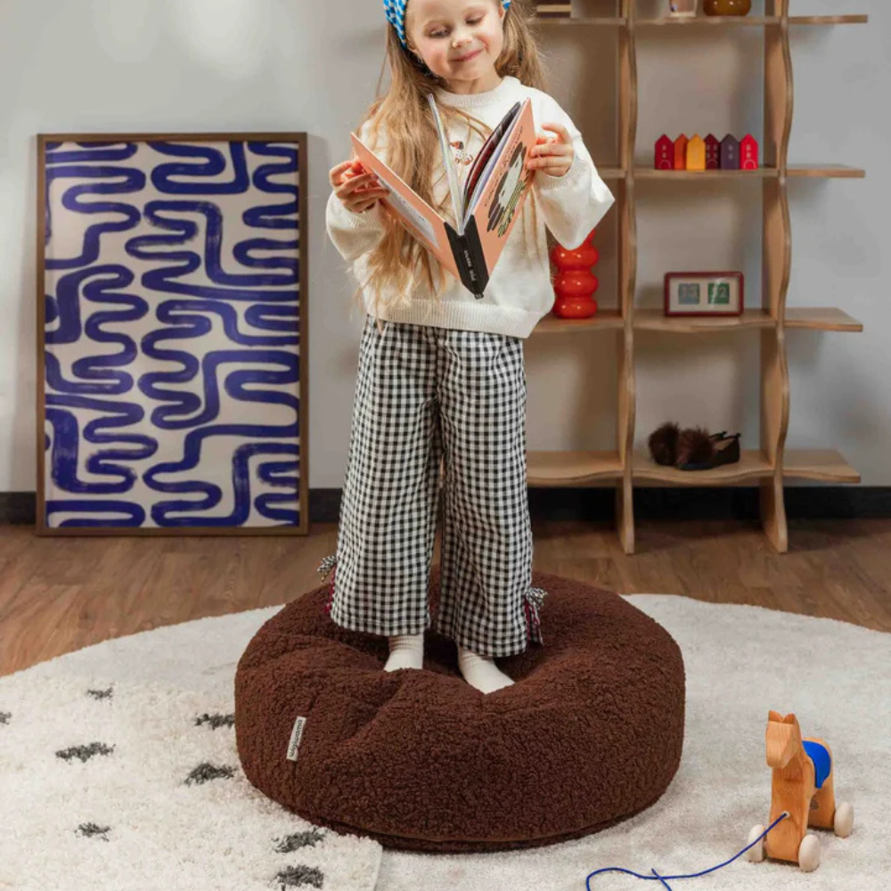 Der runde Ottoman von Wigiwama ist eine tolle Ergänzung für den Entspannungsbereich eines Kindes - er passt zu den Sitzsäcken und schafft eine gemütliche Ecke im Zimmer oder Spielzimmer.