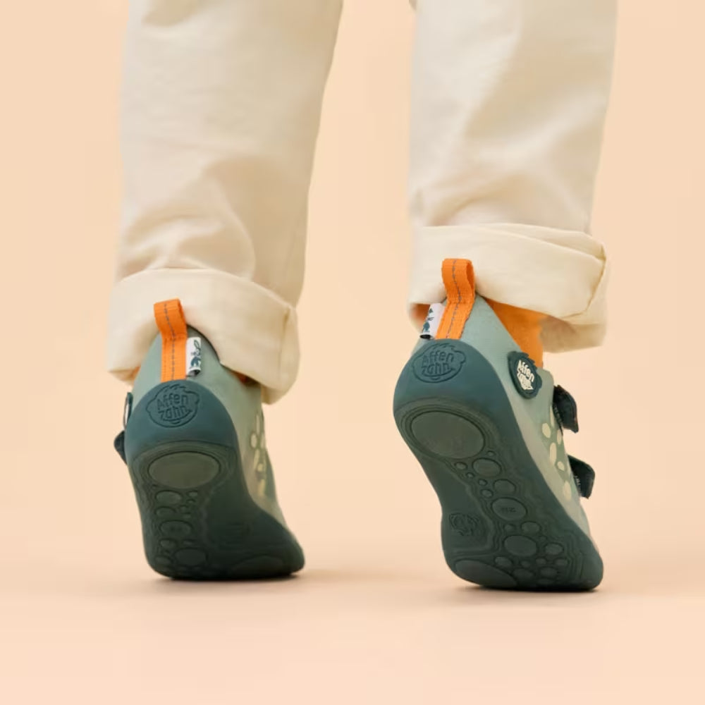 Die unverwechselbaren Details der Marke Affenzahn verleihen den Schuhen einen kindlichen und dennoch ästhetischen Look, der sich gut in den Alltag integrieren lässt.