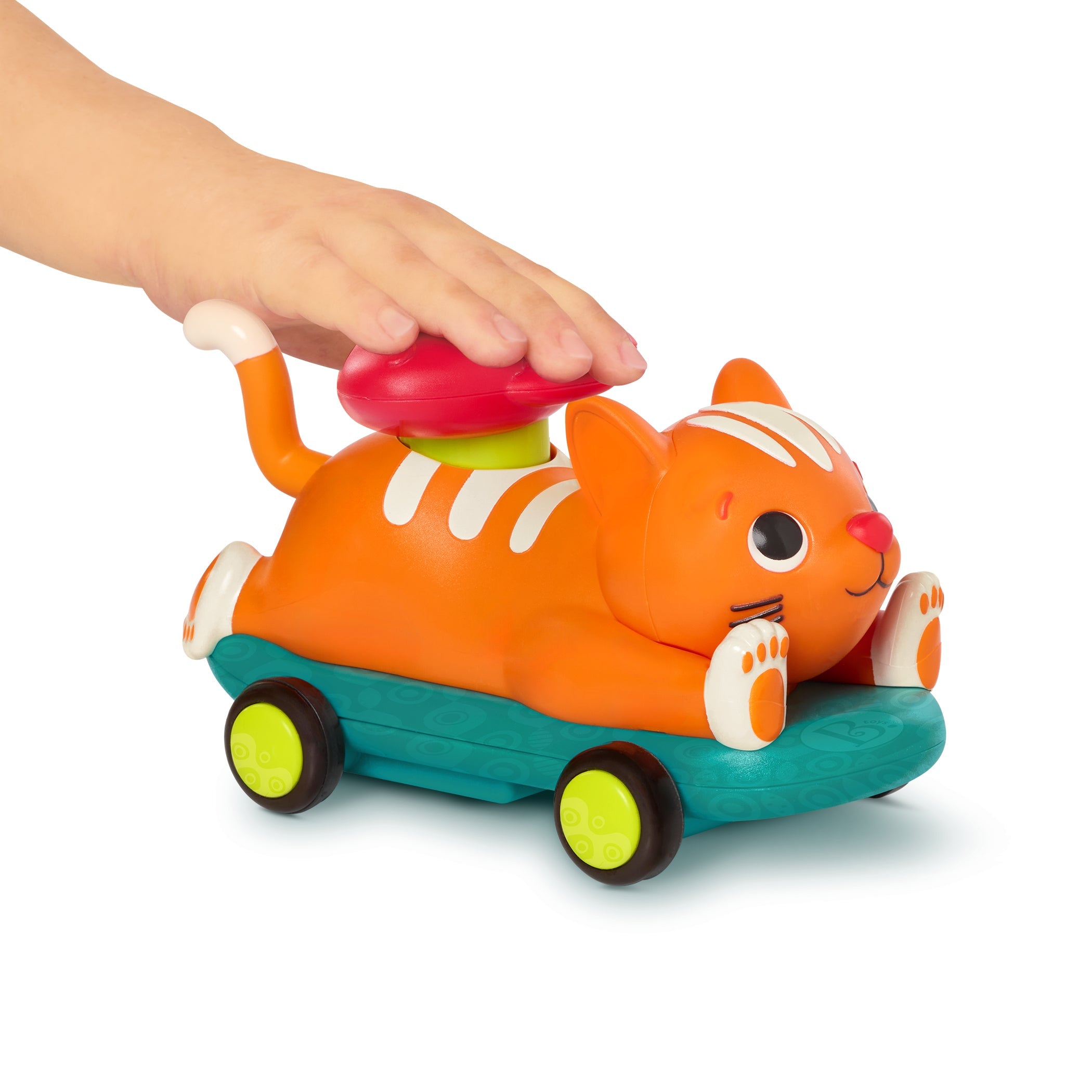 Die B.Toys PawMobiles Push&Go Autos sind ein energiegeladenes Duo: Einfach von oben auf das Fahrzeug drücken und schon nehmen Hund und Kätzchen schwanzwedelnd die Verfolgung auf.
