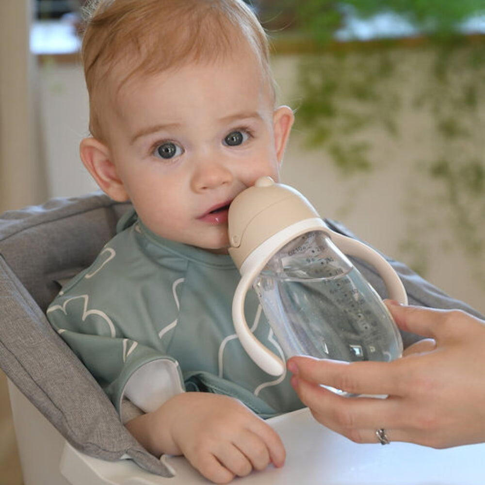 Die abnehmbaren Griffe helfen bei den ersten Trinkversuchen und können später, wenn das Kind sich sicherer fühlt, abgenommen werden.
