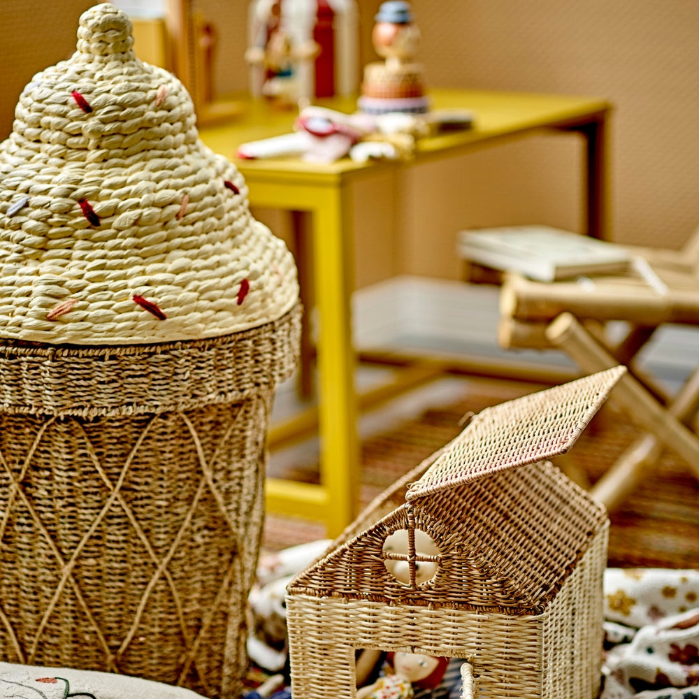 Natürliche Materialien und eine robuste Konstruktion lassen den Bloomingville Toy Basket im Alltag gut aussehen. Geringfügige Abweichungen im Aussehen können durch die Natur der Rohstoffe bedingt sein.