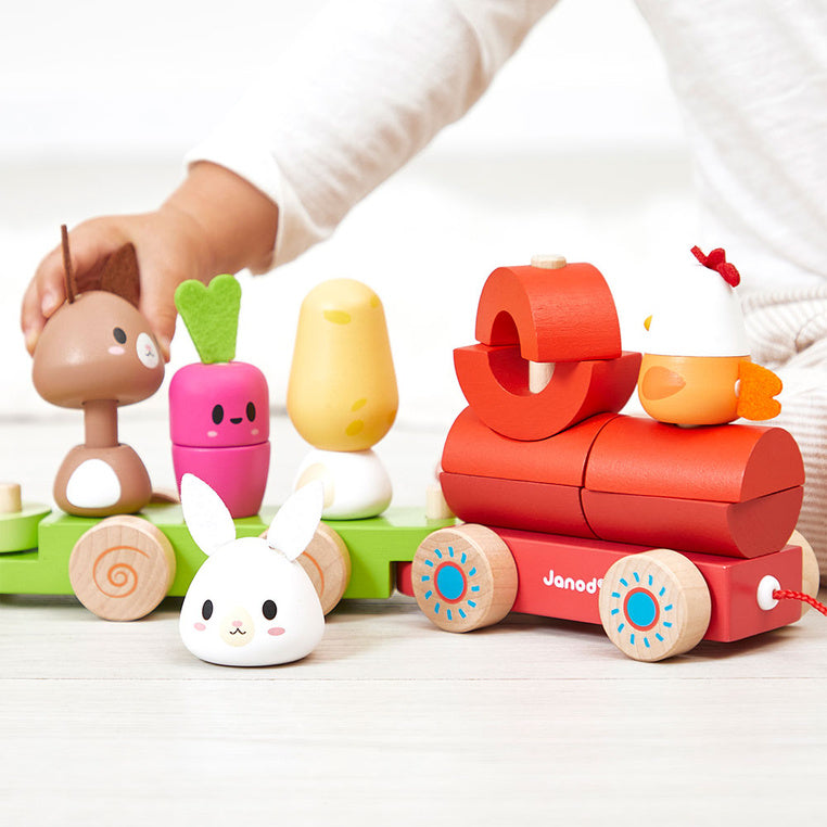 Der Janod-Kinderzug fördert die Kreativität und regt zum freien Experimentieren an. Das originelle Design hebt das Set von anderen Spielzeugen ab.