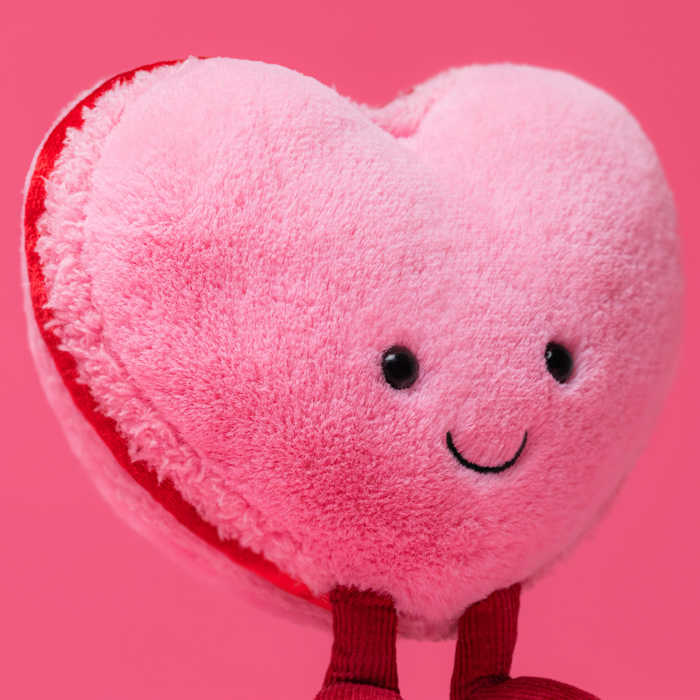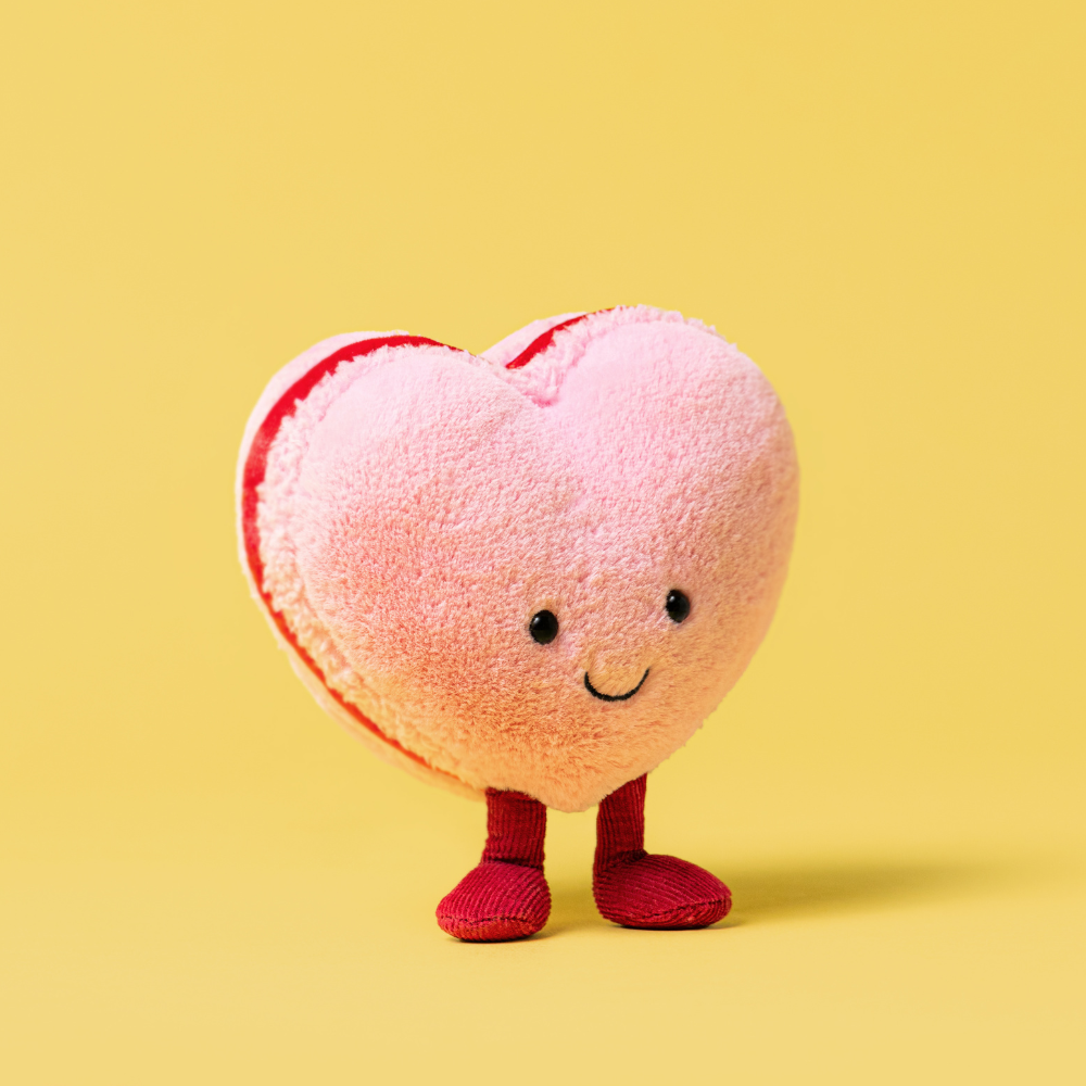 Amuseables Colette Heart Macaron von Jellycat ist ein entzückendes Maskottchen, das sofort die Stimmung hebt und ein wenig "süße" Magie in ein Kinderzimmer bringt.