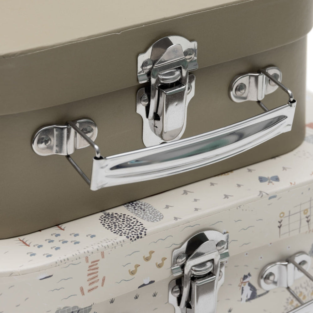 Die Koffer sind passend zur Tiny Park-Kollektion mit verschiedenen Motiven bedruckt und haben silberne Griffe, die dem Ganzen eine leichte, verspielte Note verleihen.