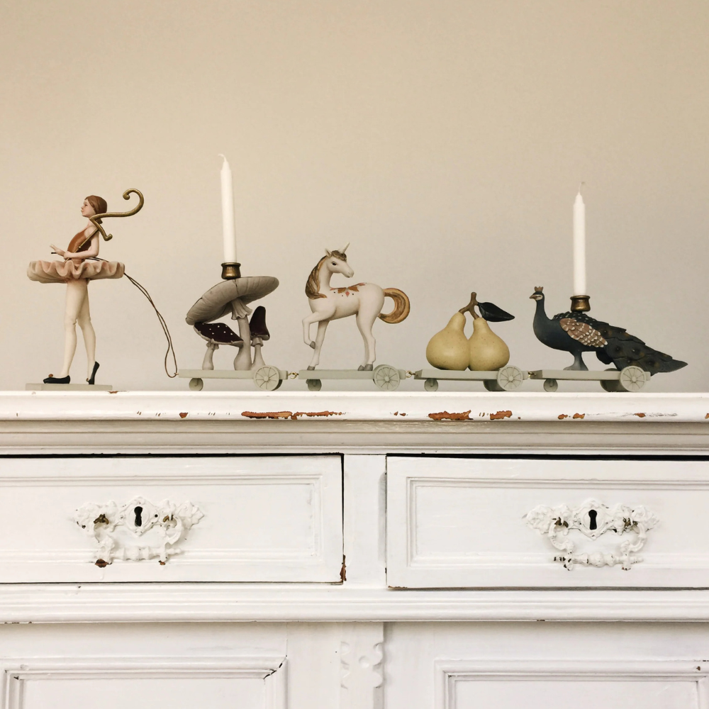 • Material: Figuren 100% Polyresin; Kerzenhalter und Ziffern 100% Metall