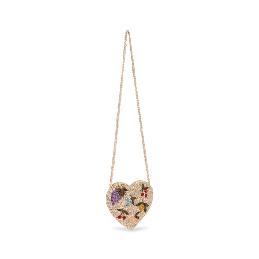 Die herzförmige Handtasche von Konges Slojd ist ein bezauberndes Accessoire, das den Outfits der Kinder einen Hauch von Magie verleiht.