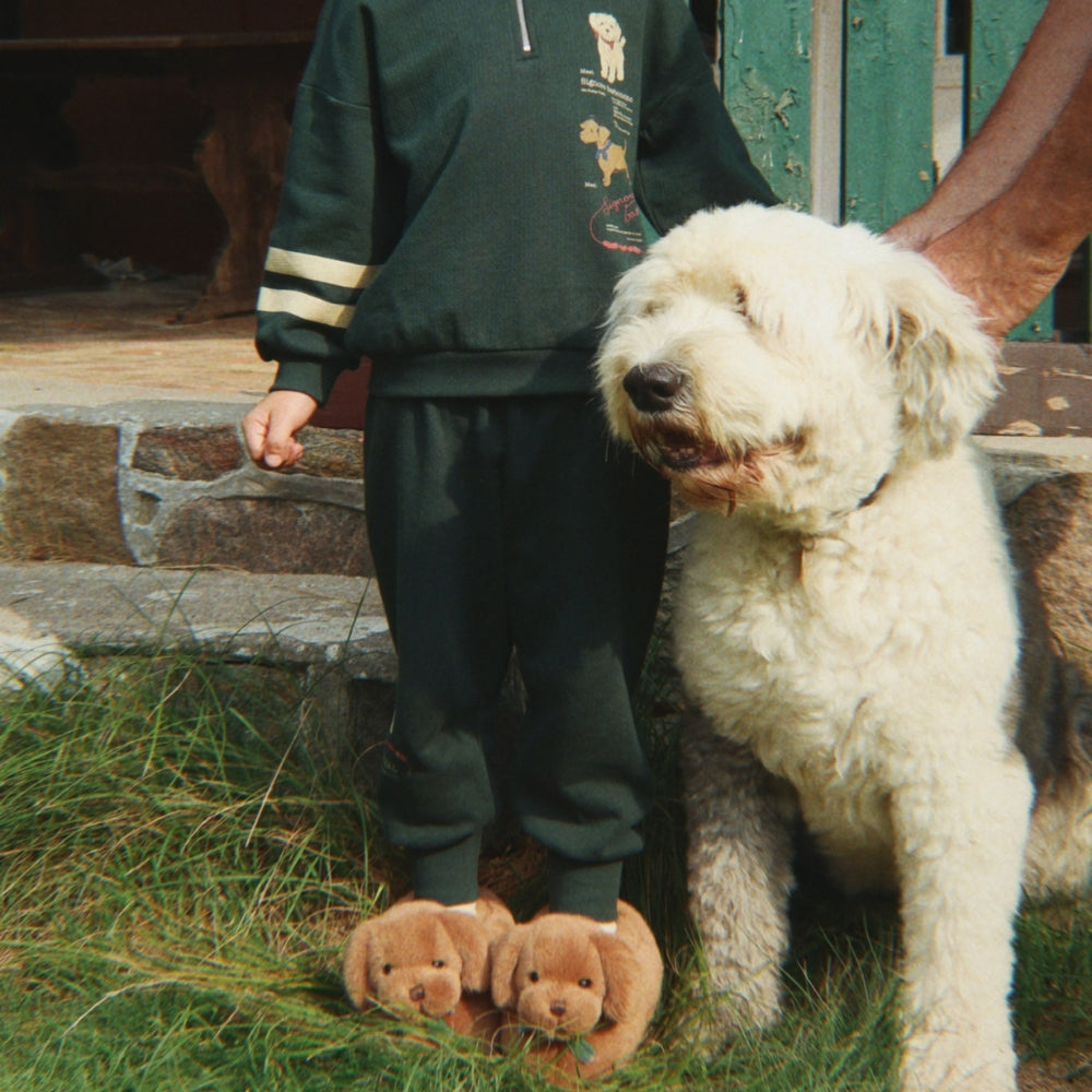 Die weiche, flauschige Oberfläche hält die Füße jederzeit warm und umhüllt sie mit Weichheit, und das verspielte Dackel-Motiv wird sowohl Kind als auch Eltern zum Lächeln bringen.
