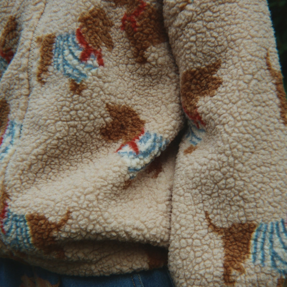 Die weiche Fleece-Innenseite hüllt es in Wärme ein, während der hohe Kragen und die elastischen Bündchen es effektiv vor Wind schützen.