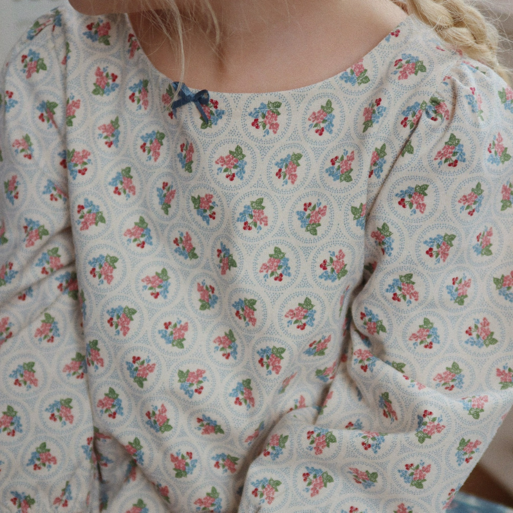 Die Puffärmel und die zarten Falten an den Schultern verleihen ihm Leichtigkeit und mädchenhaften Charme.