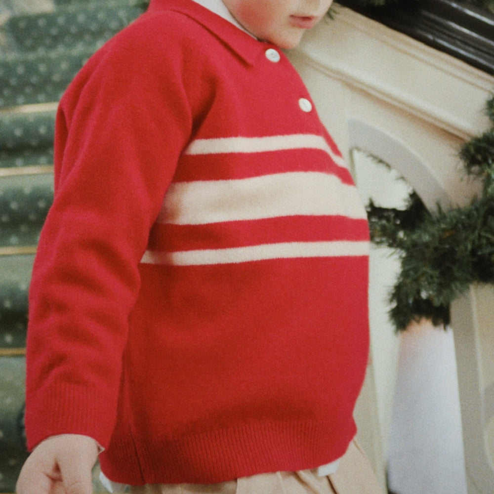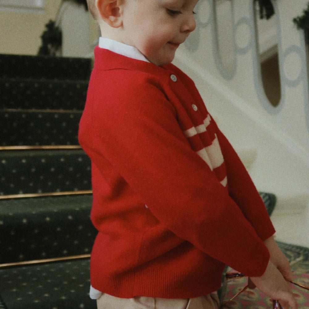 Der klassische Kragen, der Knopfverschluss und die gerippten Manschetten verleihen ihm einen eleganten und zugleich lässigen Look, der sich sowohl für das Kinderzimmer als auch für Familienausflüge eignet.