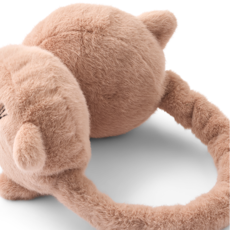 Das weiche, plüschige Material in zartem Rosa und die niedlichen Katzenohren machen das Tragen zum Vergnügen für jedes Kind.