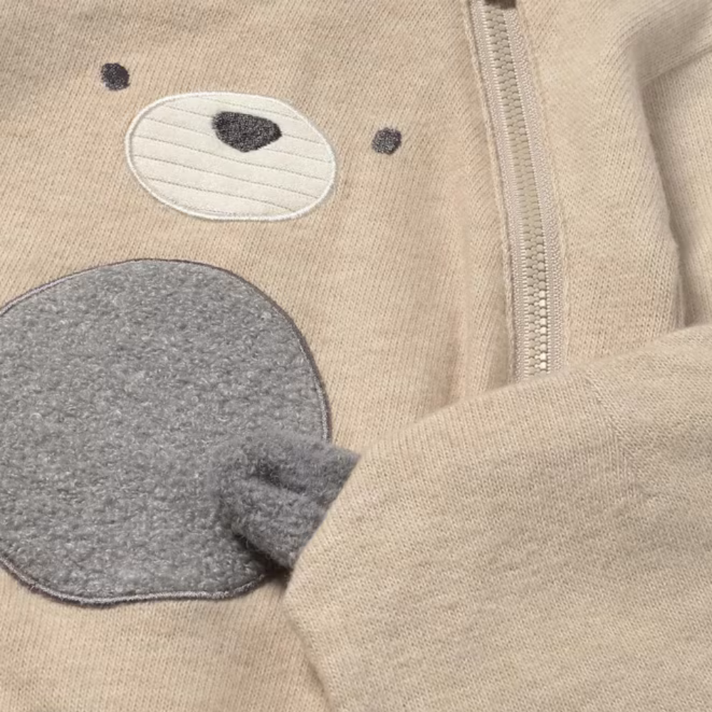 • Material:- Schlafsack (oben): 58% Baumwolle, 33% Polyester, 3% Viskose, 3% Elasthan, 2% Polyamid, 1% Wolle, Mütze (Oberteil): 59% Baumwolle, 39% Polyester, 2% Elastan; Futter: 100% Baumwolle