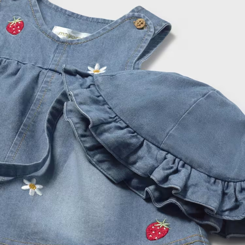 Das Mayoral Cape-Kleid ist ein bezauberndes Denim-Set für ein Neugeborenes, das sich perfekt für den Alltag und besondere Anlässe eignet.