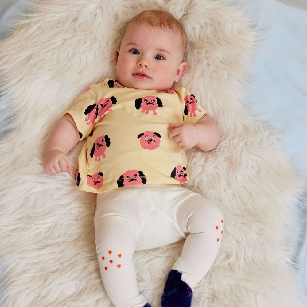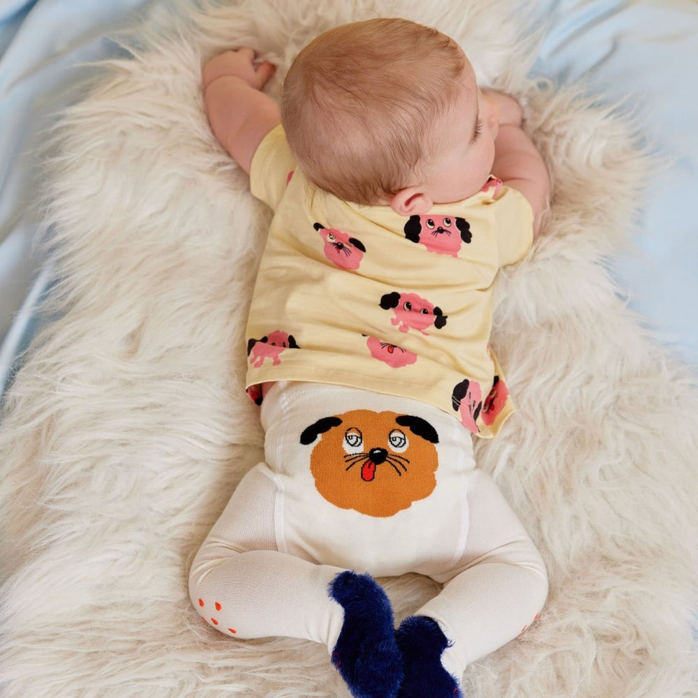 Die Marke Mini Rodini hat für das unverwechselbare, verspielte Doggies-Muster gesorgt, das sofort ins Auge sticht.
