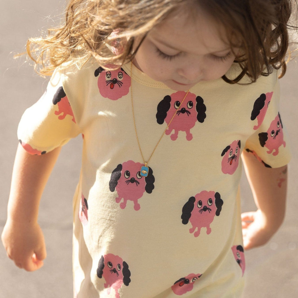 Mini Rodini T-Shirt mit kurzen Ärmeln für Mädchen Doggies Gelb