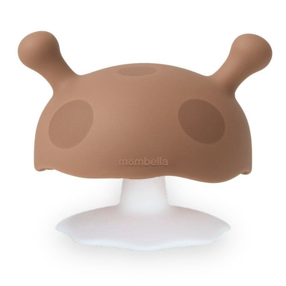 Der Mombella Mushroom Mocha Loca Beißring ist ein sorgfältig entwickelter Beißring für Babys, der eine beruhigende Funktion mit einem sicheren, sensorischen Spiel verbindet.