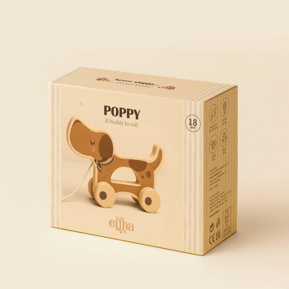 Mrs Ertha Hölzerner Welpe auf Rädern Poppy