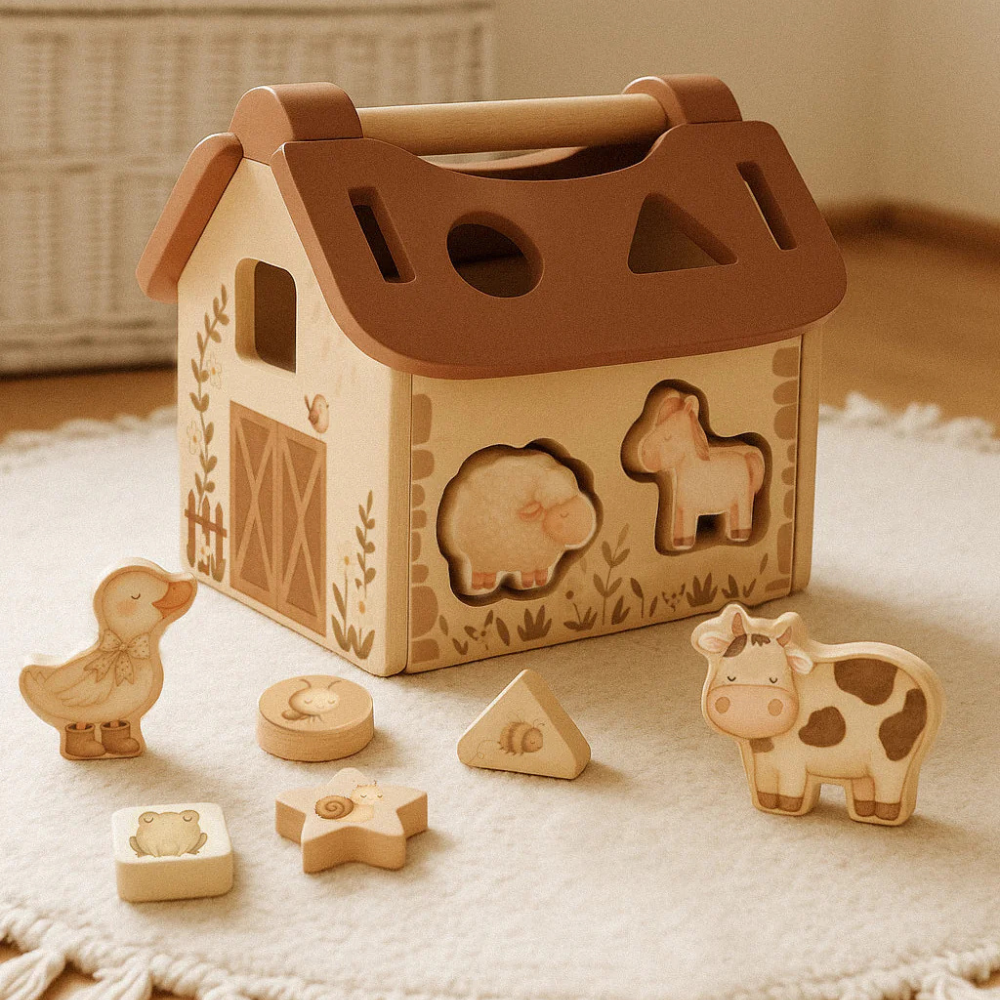So eignet sich die Holzscheune sowohl für das alltägliche Spiel als auch für einfache pädagogische Aktivitäten, die mit der Neugier des Kleinkindes wachsen. Wenn Sie sich für Frau Ertha entscheiden, setzen Sie auf Langlebigkeit, Sicherheit und ein zeitloses Design, das in jedes Kinderzimmer passt.