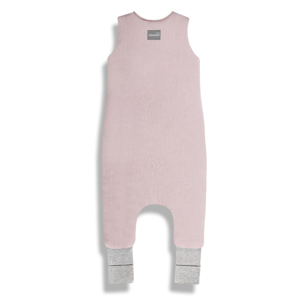 Sleepee Musselin-Schlafsack mit Beinen in zartem Rosa.