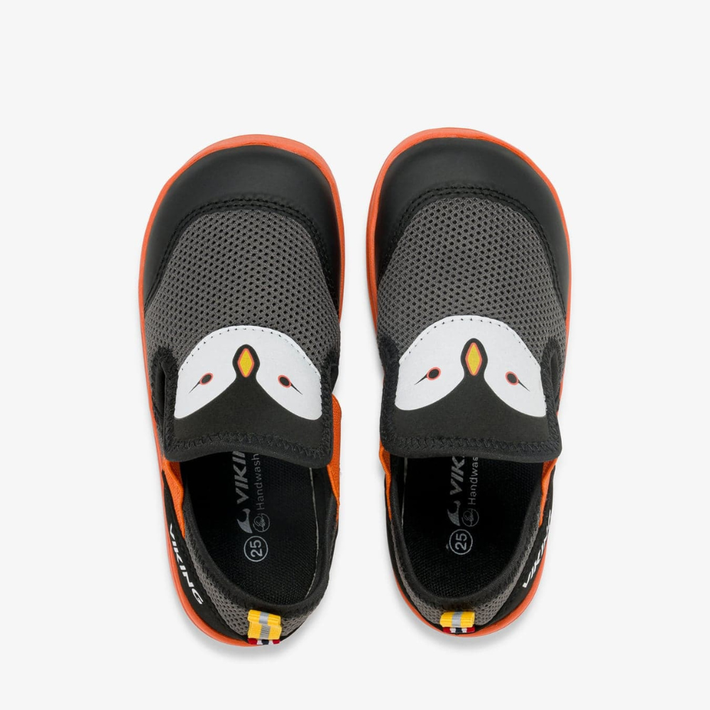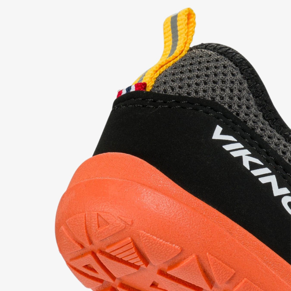 Viking hat oben einen elastischen Gummizug für einen sicheren Sitz und eine strukturierte Sohle aus Naturkautschuk für besseren Halt verwendet – die Viking Alv Paw Barfußsandalen sind bei 30 °C in der Waschmaschine waschbar, und die herausnehmbare Einlegesohle erleichtert die Pflege.